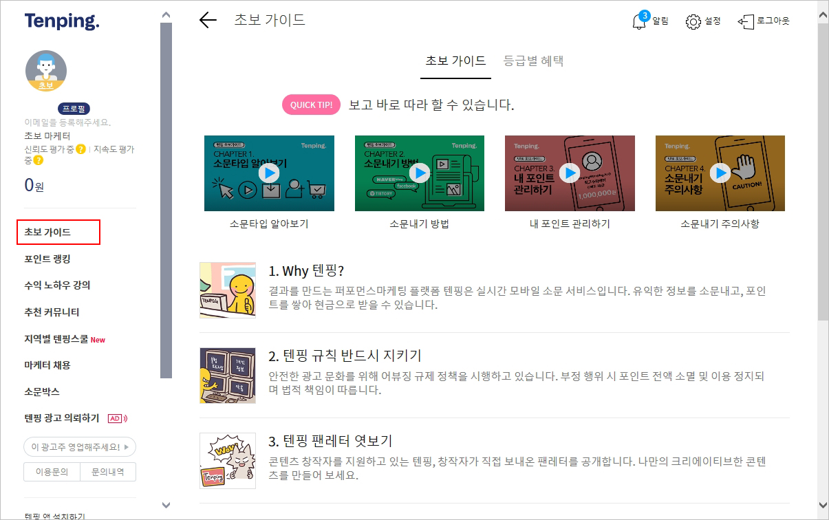 모바일 소문 서비스 텐핑입니다. 유익한 콘텐츠를 소문내고 유효한 소문을 낸 만큼 현금포인트를 쌓으세요.